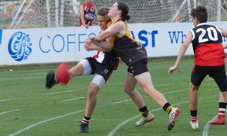 Grafton started the match in perfect fashion with a four goal opening quarter to hold a 29 point lead at the first break. Sawtell changed things around at the first break and were able to limit the Tigers to just two goals in the second term, but couldn’t find a target up front to convert positive build up play.