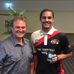- Mitch Napier accepts the Under 18 GOal Kicking Award from Spida