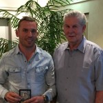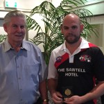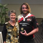 - Luke Matthews accepts the Brian Saville Medal from the man himself!